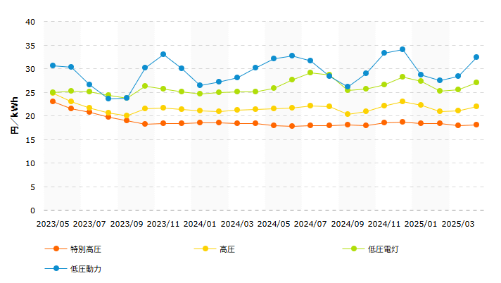 コロナ禍あたりから徐々に上昇傾向にあり、2023年には頭打ちしたものの、そこからは一向に下がる気配が見えないです。また、物価上昇影響から自宅で過ごすことが多くなり、必然的に電気の使用料も上昇。内も外もお金がかかるのが今の日本・・・