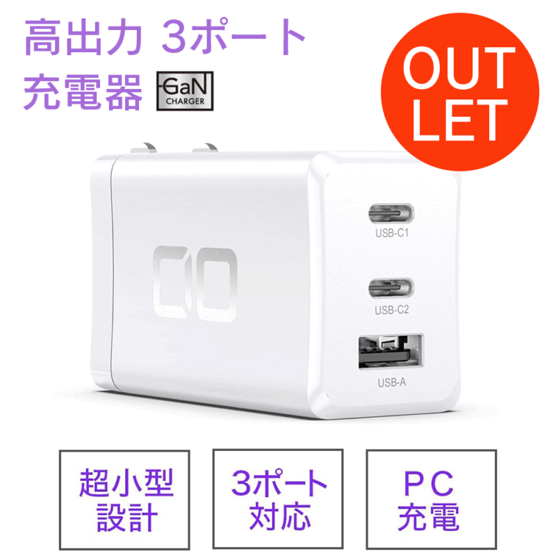 GaN 65W 充電器 ホワイト ACプラグタイプ