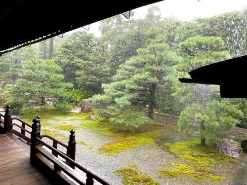 京都の院ということで風情があり、庭園も非常に綺麗でした。しかし、参加当時はあいにくの大雨。綺麗な庭園を写真に収めたかった・・・